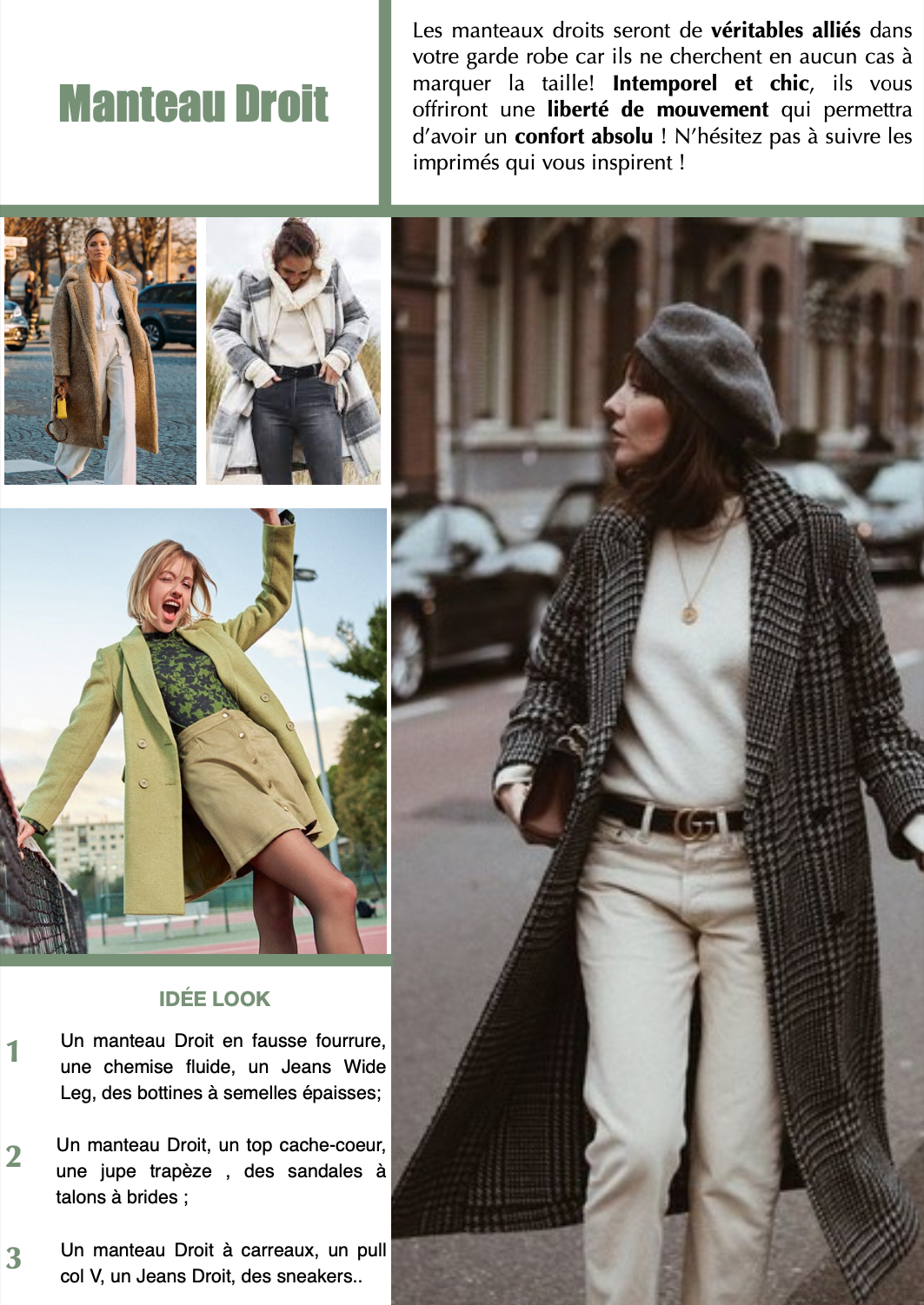 - Les différentes pièces qui sublimeront votre silhouette ;